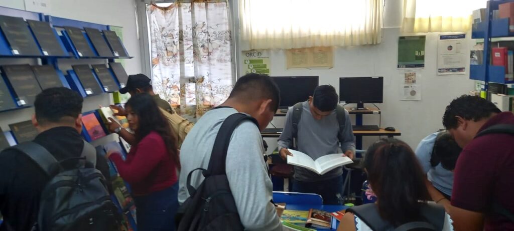 Durante la visita, los jóvenes conocieron los servicios y recursos que ofrece la biblioteca, exploraron su espacio físico y consultaron documentos impresos relacionados con ciencias forestales, suelo y vegetación. Además, recorrieron las exposiciones de tesis de posgrado y nuevas adquisiciones, lo que les permitió apreciar parte del trabajo académico que se desarrolla en la institución.