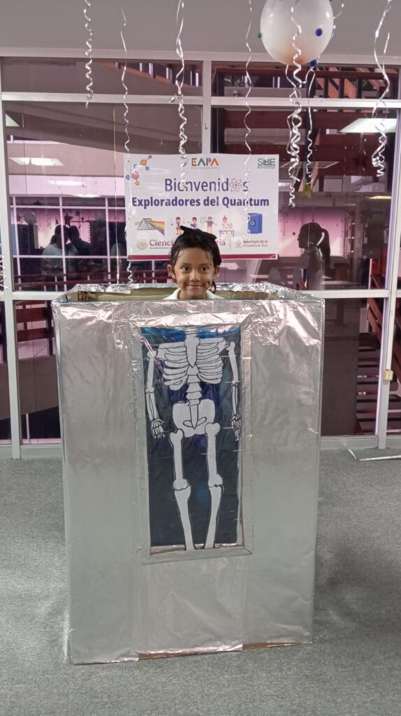 El rally, coordinado por Paulina Coutiño Pérez, Ana María Galindo y María Eugenia Muñoz Marroquín, incluyó además una divertida “cajita para fotos” que simulaba una máquina de rayos X, en alusión a una de las aplicaciones de la física cuántica.