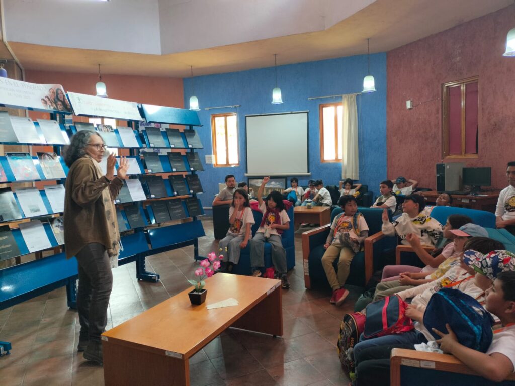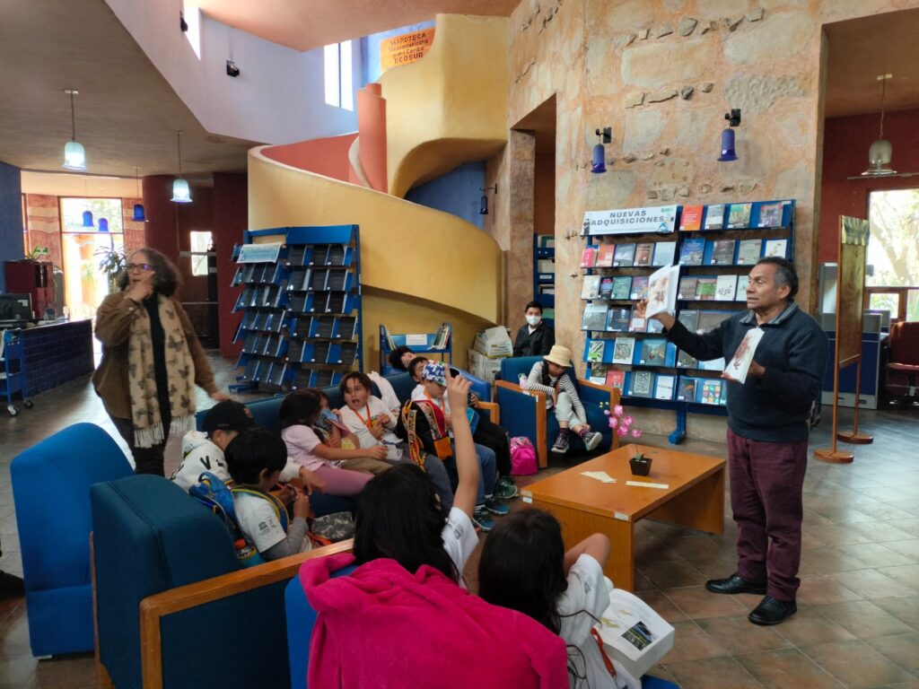 El jueves 5 de marzo tuvimos la visita de un grupo de tercero de primaria de la escuela Pequeño Sol. Después de un recorrido por otras áreas de Ecosur, aterrizó en la biblioteca con muchas preguntas e inquietudes. Así que partimos de ellas para platicar sobre lo que se hace en una biblioteca, cuántas bibliotecas había en Ecosur, cómo usar los espacios, en dónde se debe guardar silencio y en dónde no, dónde se dejan los libros después de usarlos. Surgieron preguntas más profundas como quién escribe los libros, especialmente “esos libros negros” que estaban en exhibición. Les explicamos que esos libros eran las tesis con las que estudiantes del posgrado obtienen su grado de maestría o doctorado. Otra pregunta interesante: ¿después de leer varios libros cómo los combino para escribir uno? Esto dio lugar a la explicación sobre qué es la investigación y la importancia de leer a quienes han hablado del tema o el lugar que nos interesa estudiar, escribir lo que dicen e integrarlo en nuestro escrito “combinando” las ideas. Hablamos de la importancia de dar el crédito a los autores de los que tomamos las ideas, quién dijo que y en qué libro, artículo o tesis. Un niño se acercó y en voz baja me dijo que un compañero le había copiado un juego y no dijo que él lo había inventado, o sea, no le dio crédito. Le dije que no había problema, que se sintiera orgulloso de que sus ideas fueran copiadas pues más niños y niñas jugarían con lo que él creo.